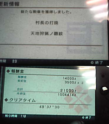 モンハンも村クエの終焉をクリアしてしまったのでモンハンにて目標無くしてます(笑)ううん、勲章全部手にいれるかー??こうなったら。(笑) 終わりがないよ、モンハン。